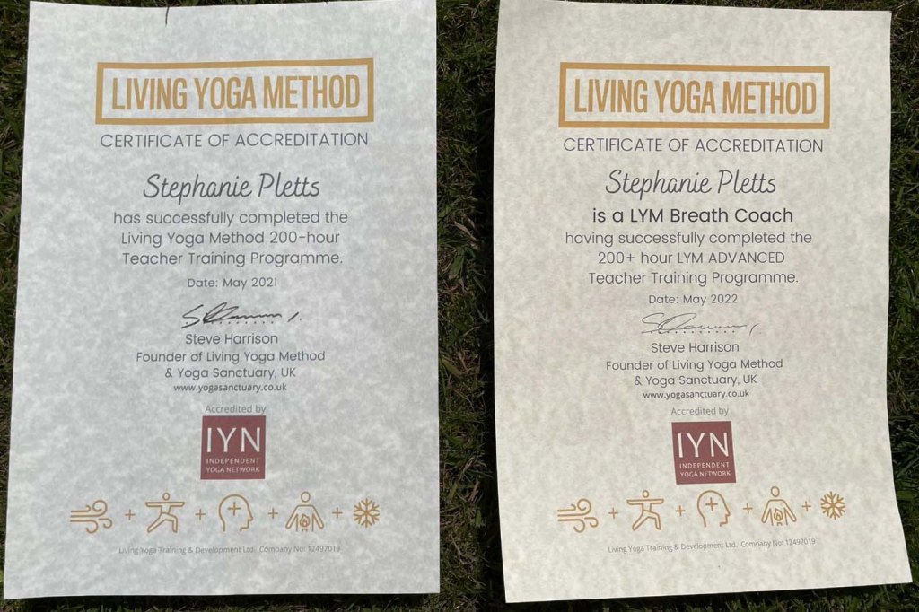 After some research I started my teacher training with Steve Harrison, founder of the Living Yoga Method (LYM) at The Yoga Sanctuary, Southampton, in 2020-21. The LYM is a systematic approach to the ancient technologies of yoga combining timeless wisdom with modern science and practical techniques and this method was created to thoroughly empower its practitioners though the avenues of breath, mind and body.